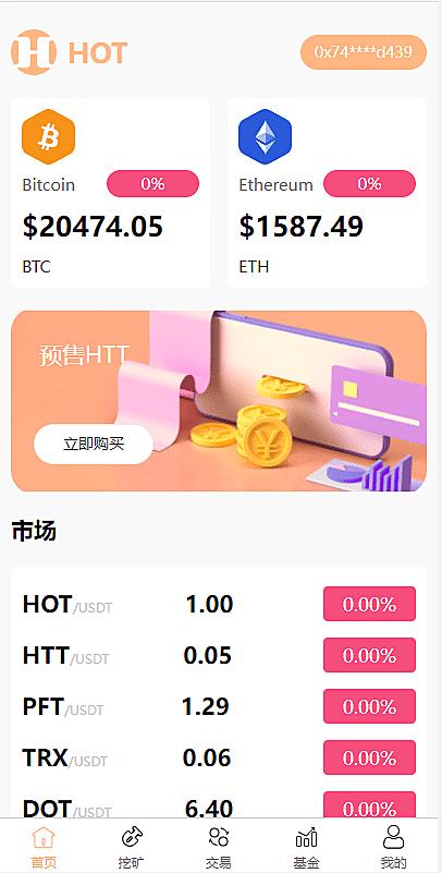一款全新开发的dapp虚拟币质押理财交易系统,产品支持质押挖矿,基金购买,代币买入卖出