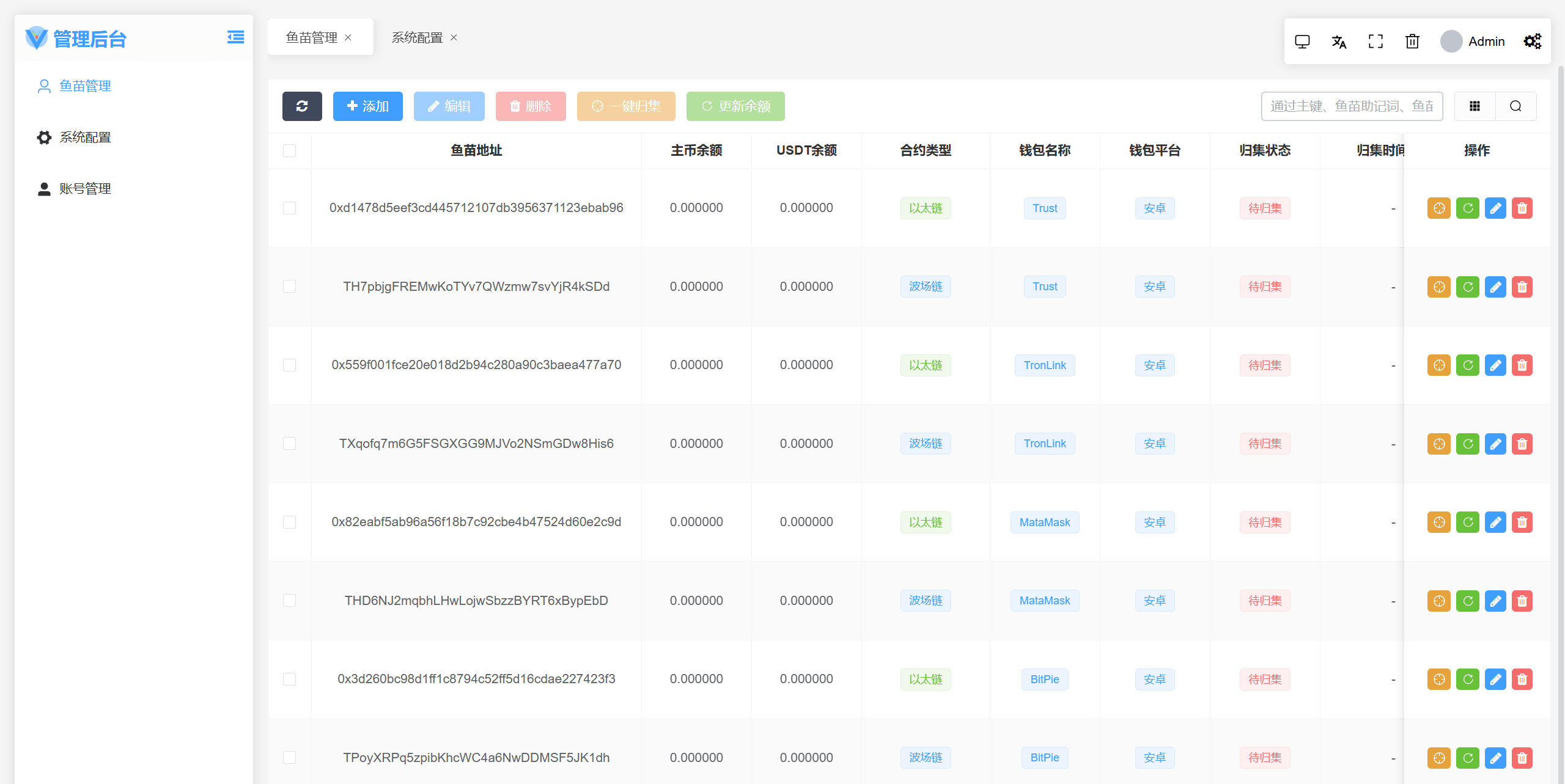 ✔️ 💰 一键归集 —— 自动收集用户资产,汇总至您的主控地址