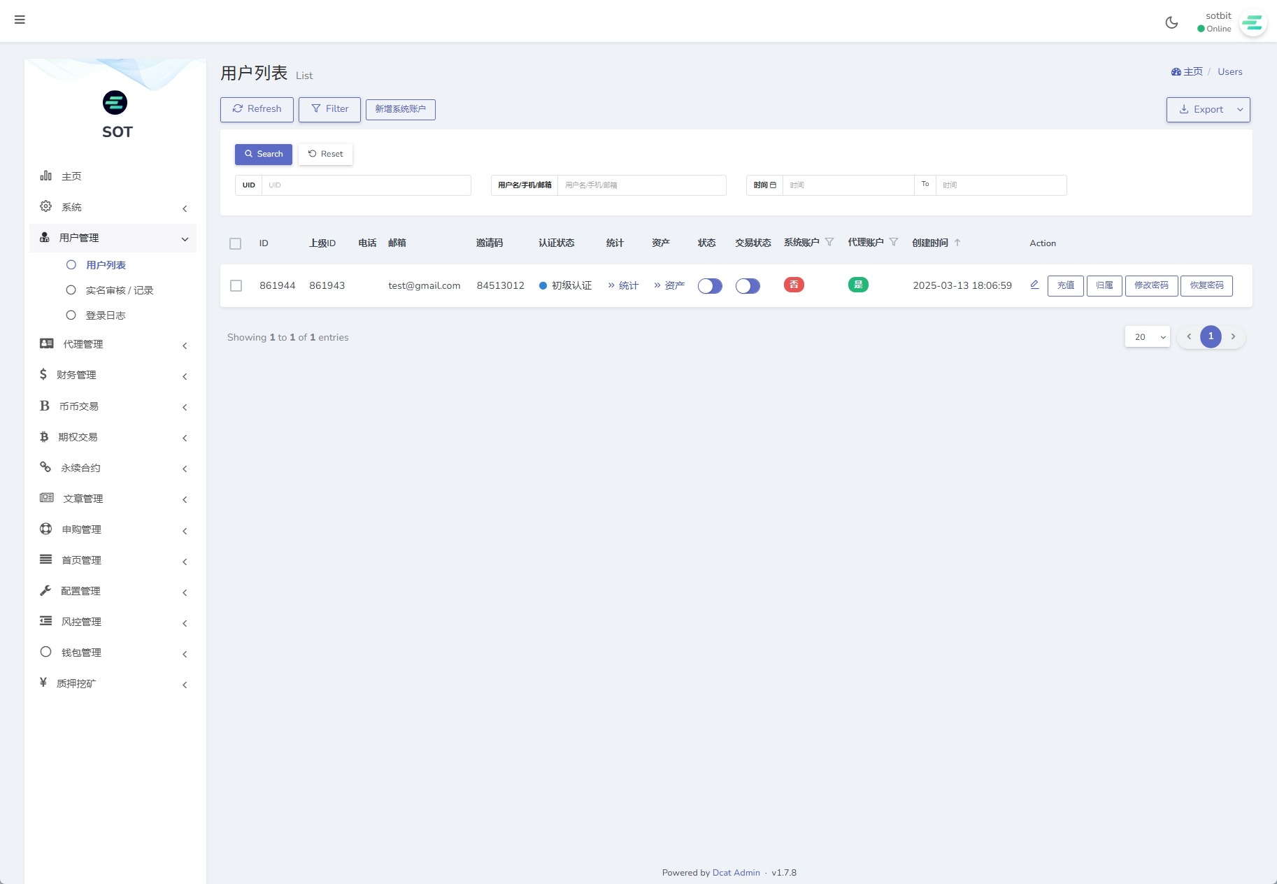 3、钱包管理(用户钱包管理、资金调节、钱包日志、转入转出记录)
