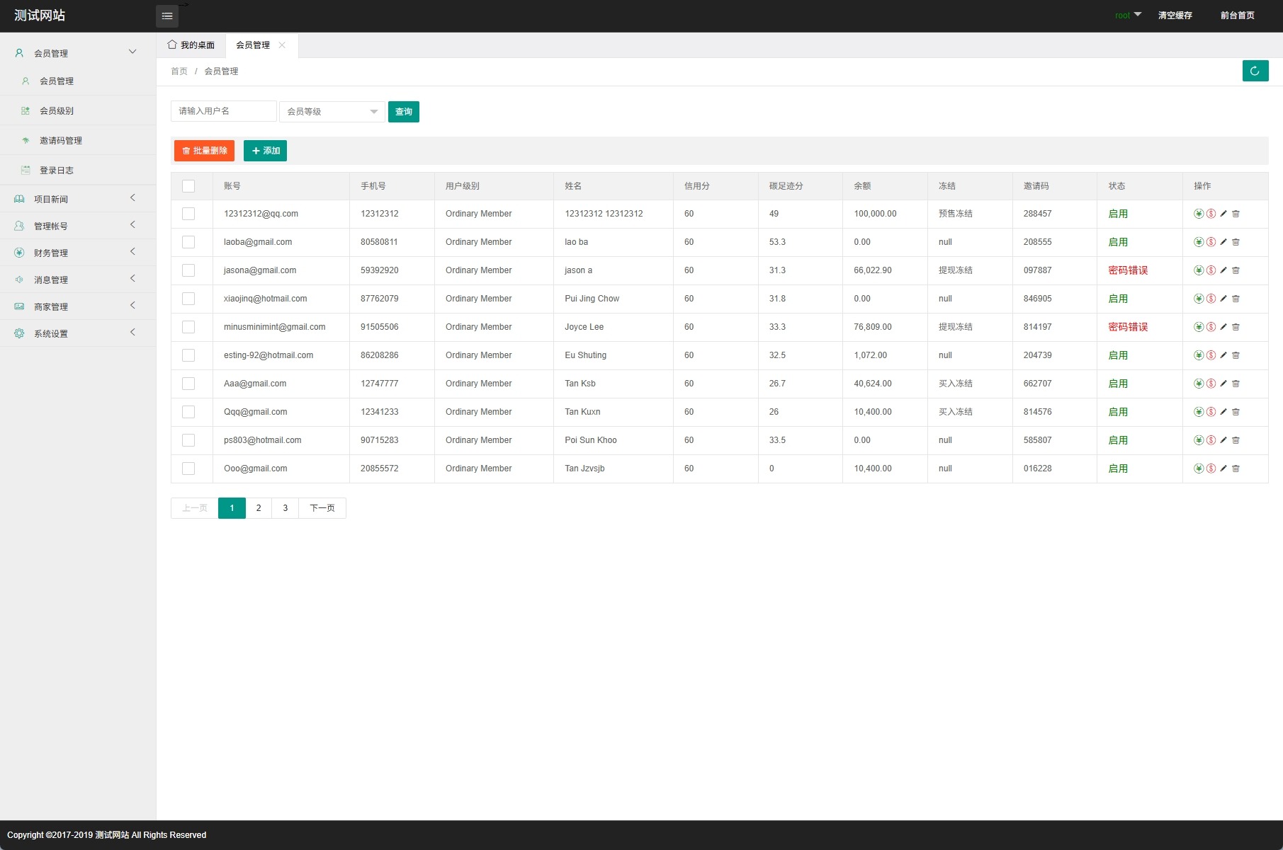 系统功能:注册问卷,投资密码,注册邀请码等功能