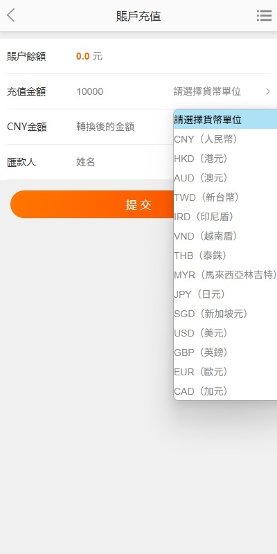 充值支持多汇率充值,后台可自定义设置