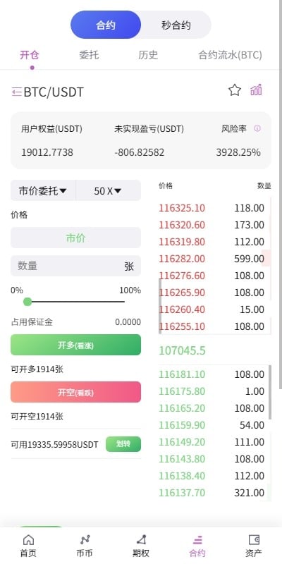 控制:秒合约单控,合约杠杆幅度上下浮控制