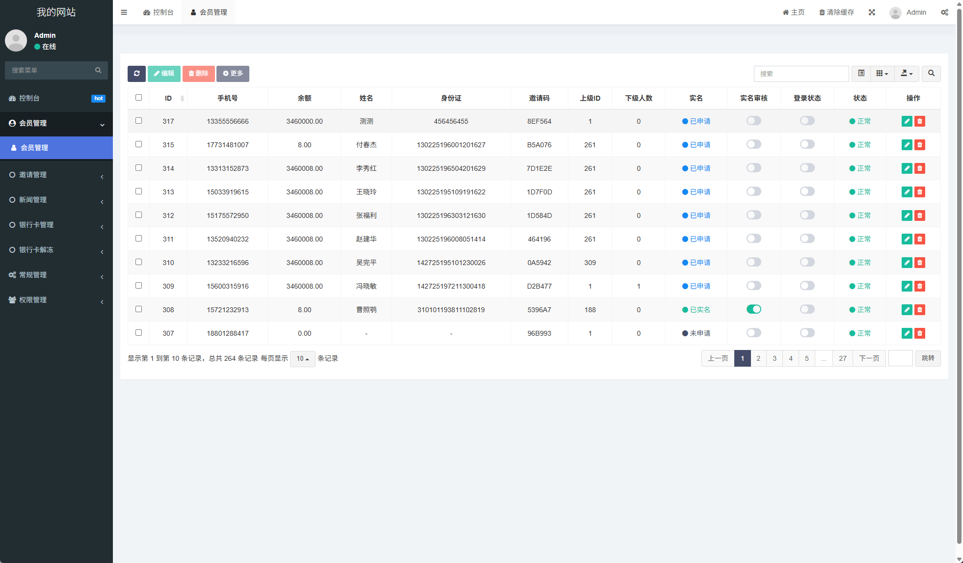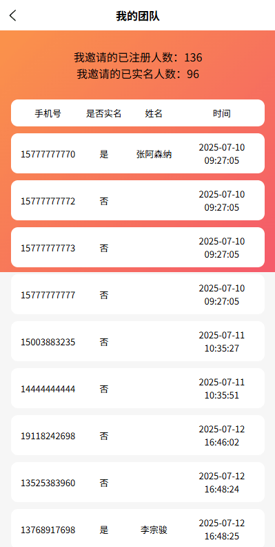 ✅ 实时统计:邀请总数 / 已实名人数 / 奖励达标进度