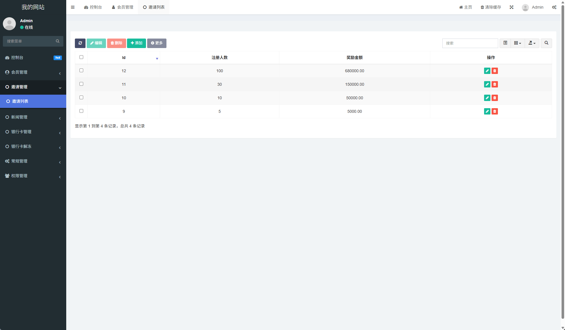 ✅ 后台管理:查看邀请详情、导出数据、配置奖励参数
