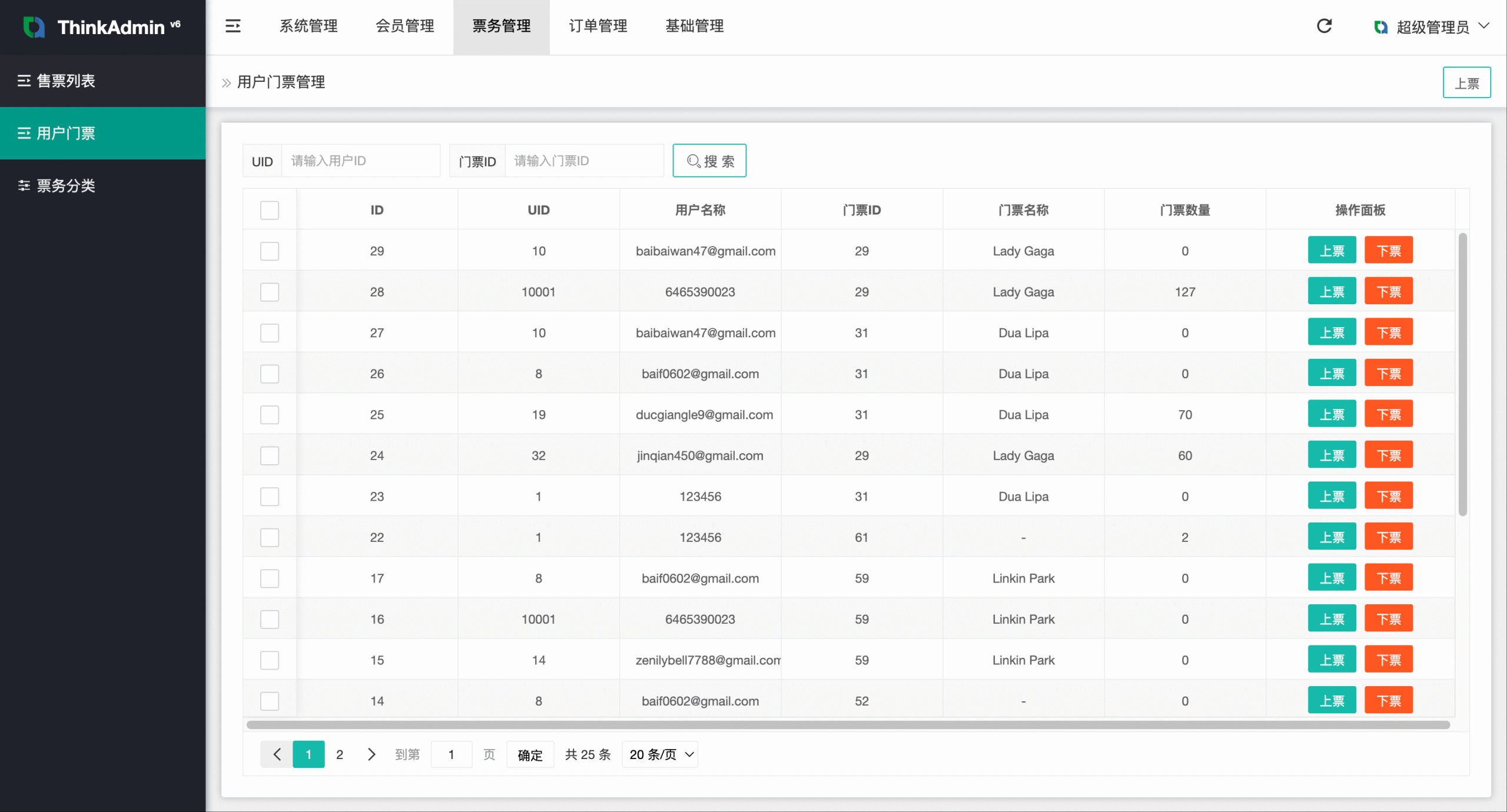 上票下票门票票务系统