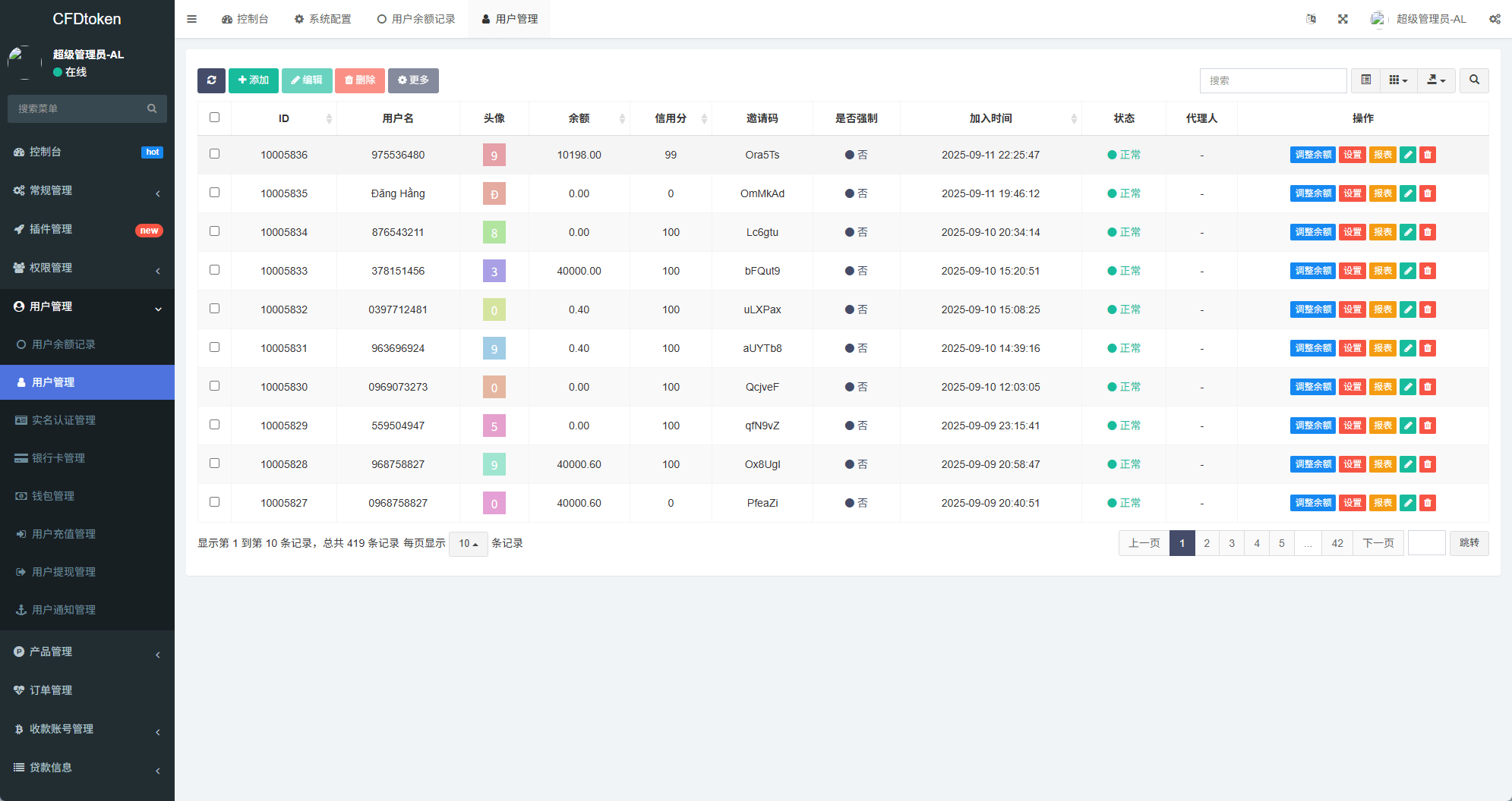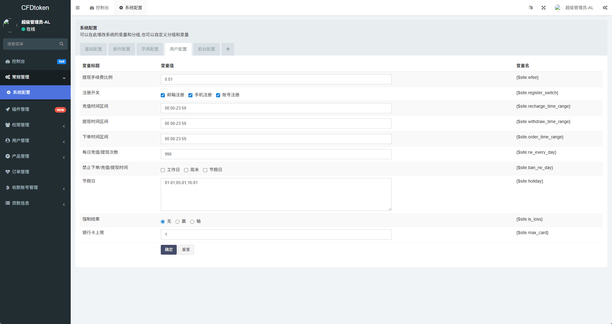 系统功能:信用分,实名认证,银行卡usdt充值提现,用户单控,订单控制等功能