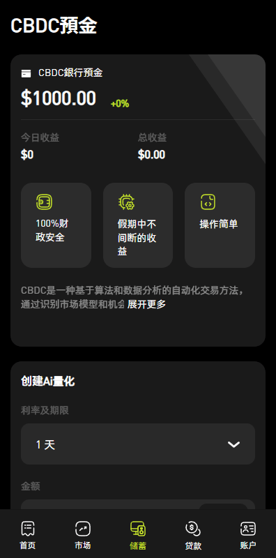 功能:合约交易,期权交易,申购,量化,借贷,实名认证等
