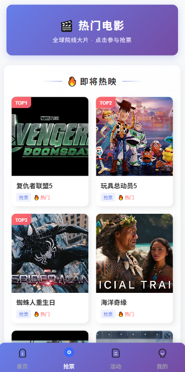 多语言电影抢票系统/购票竞猜下注/票房抢购