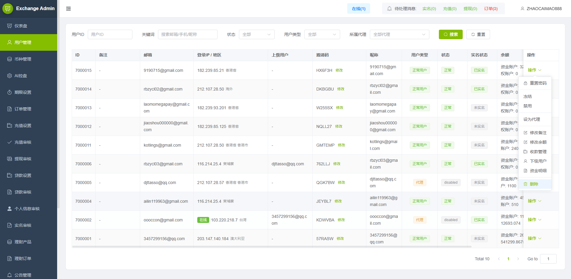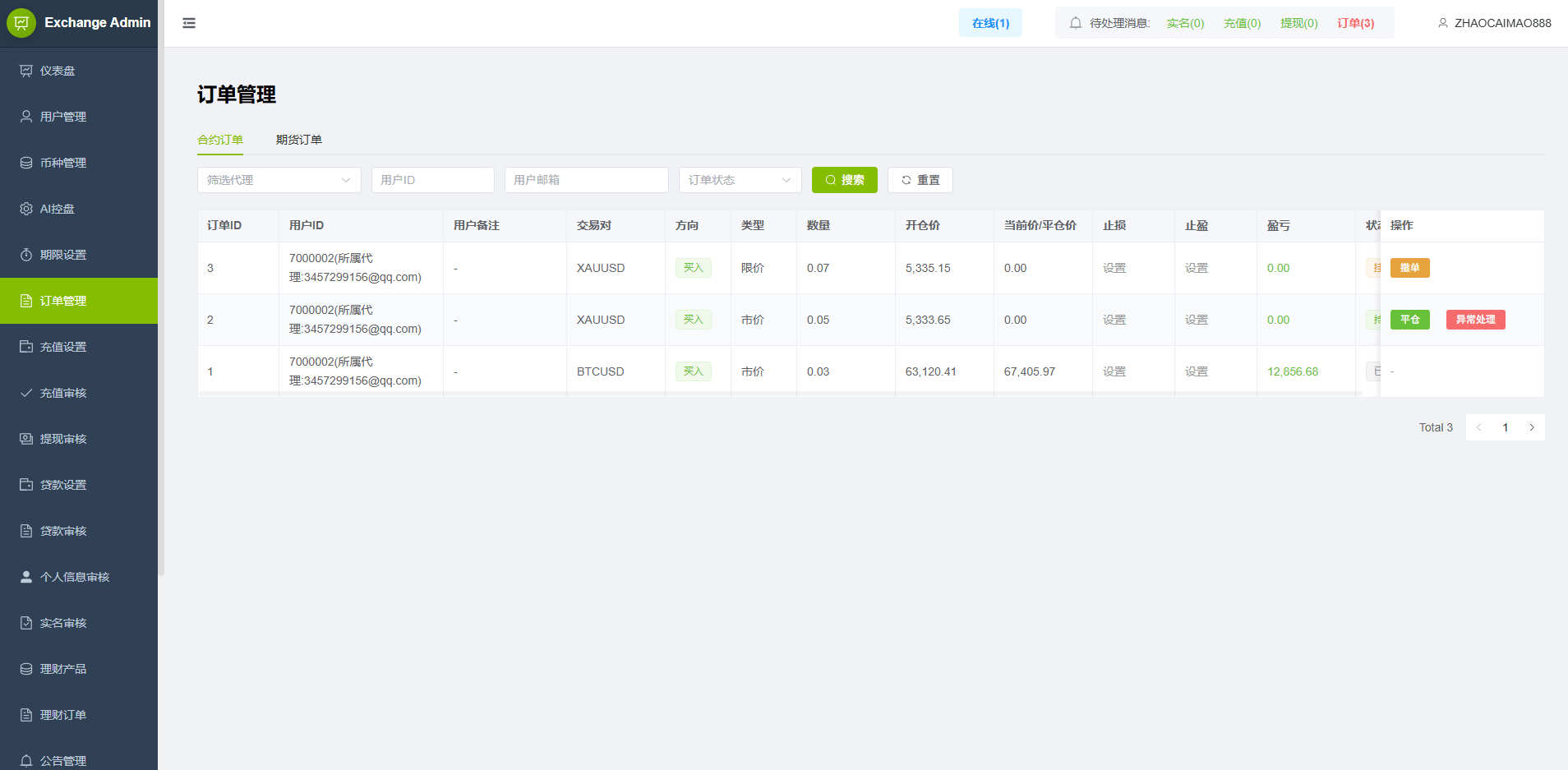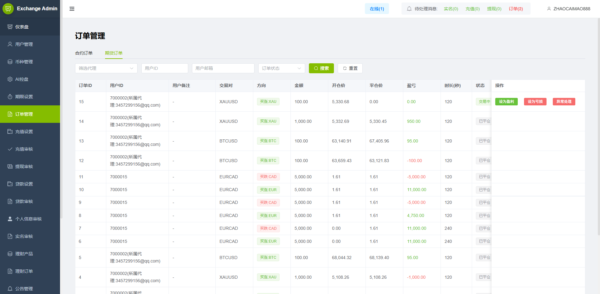 功能支持:合约,期权,贷款,理财,实名认证,AI控盘等功能