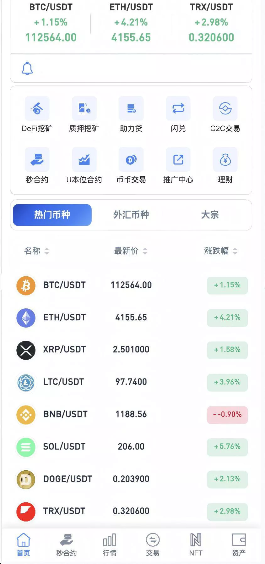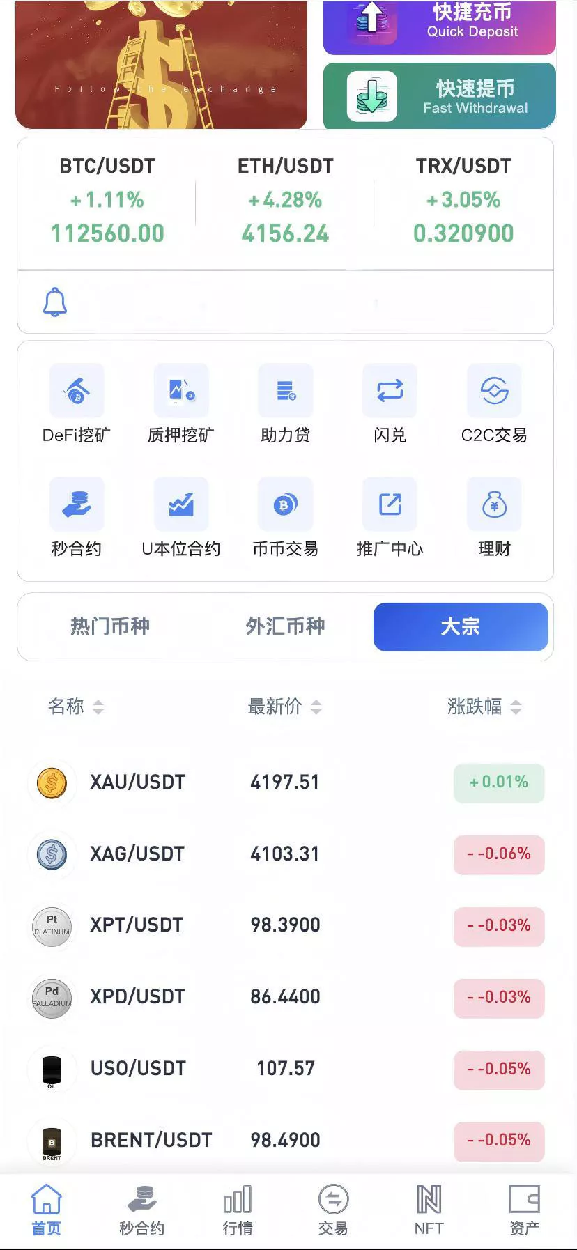 Dapp交易所源码+币币+秒合约+DeFi+U本位+NFT+质押+C2C+机器人+多语言+外汇+黄金+大宗+交易等等功能