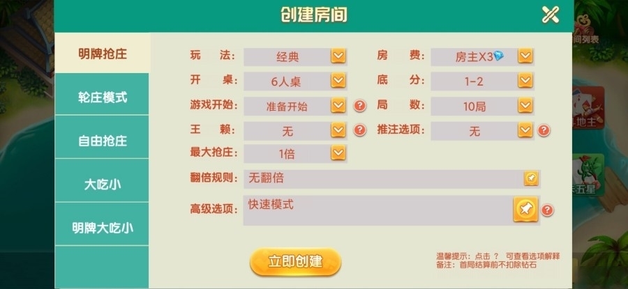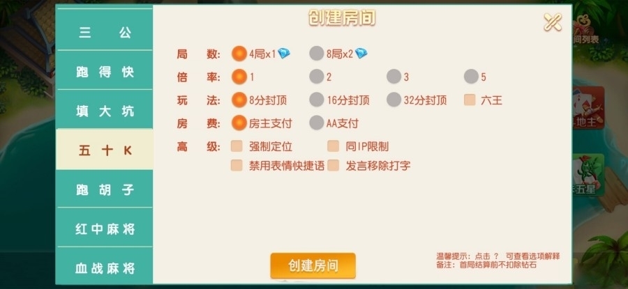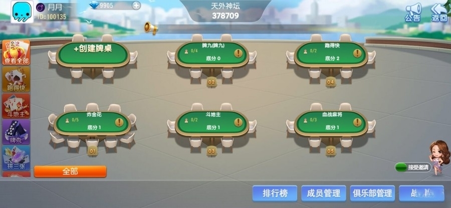 游戏:*,三公,炸金花,跑得快,斗地主,十三水,福建十三水,浙江十三水,血战麻将,长沙麻将,比鸡,推筒子,贵州麻将,红中麻将,卡五星,510K,跑胡子,斗公牛,填大坑,牌九,十点半