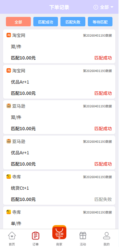 伪商城投注购单系统/订单自动匹配/系统彩预设/代理后台