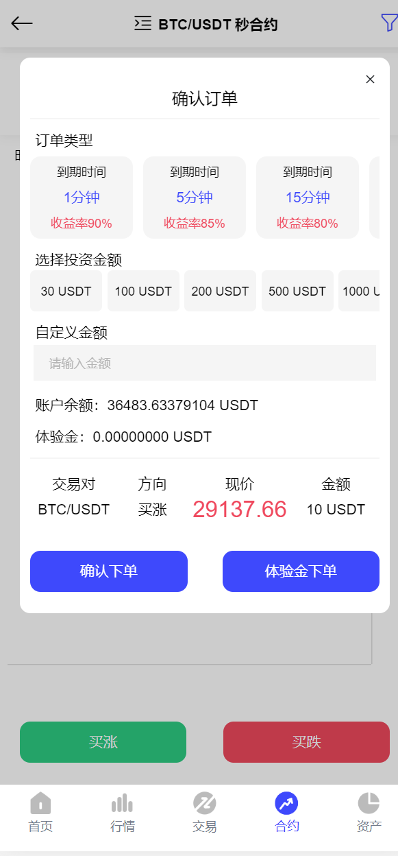 多语言微盘系统/虚拟币微交易/时间盘/秒合约